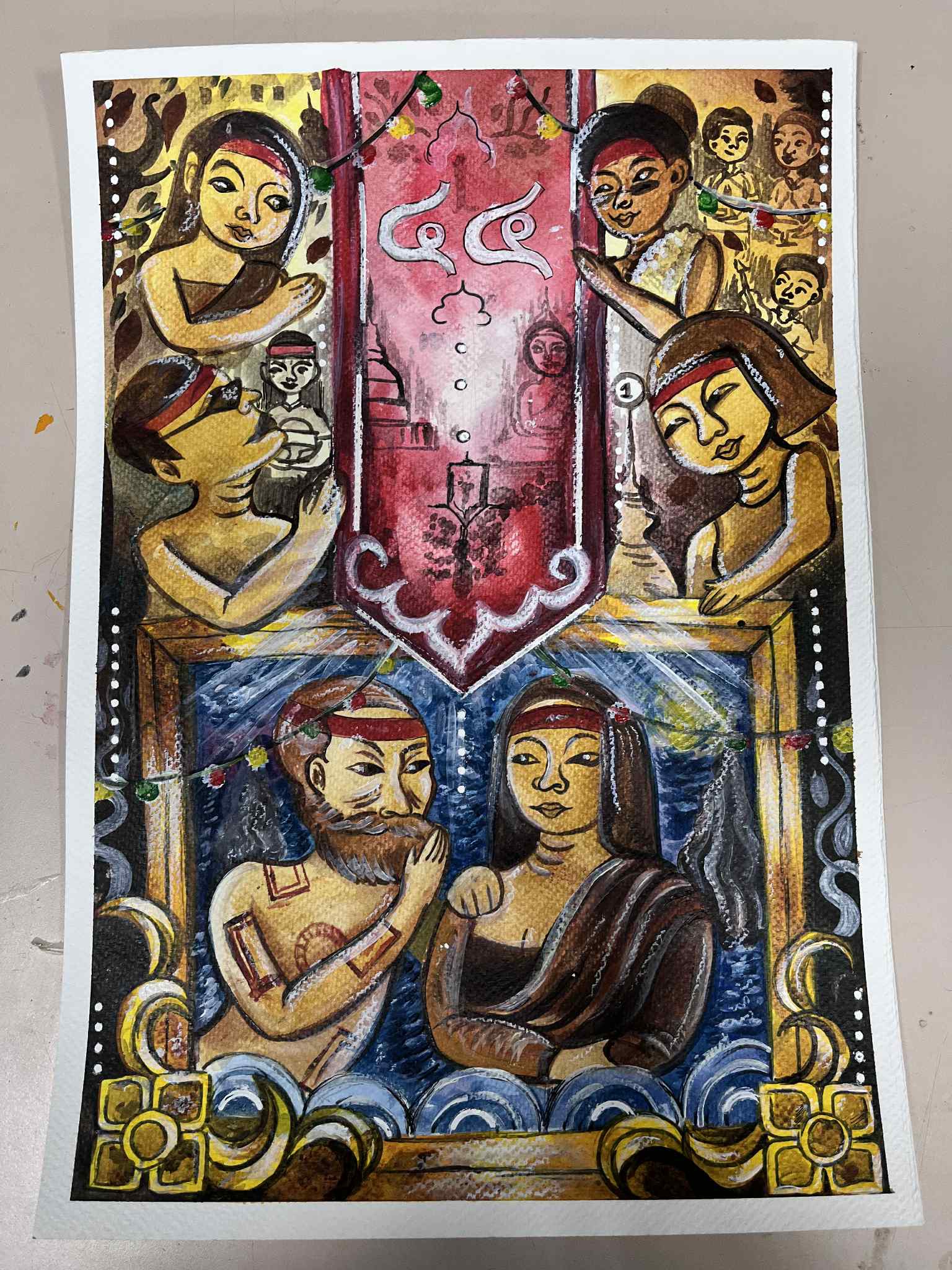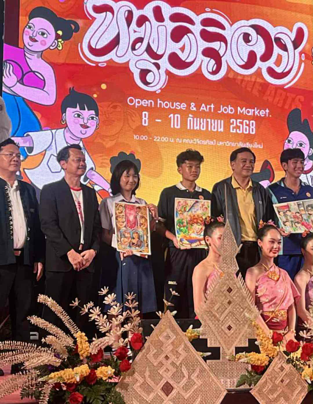 น.ส.ณัฐนิชา นิลสุ นักเรียนชั้น ม.6 โรงเรียนโกวิทธำรงเชียงใหม่ ที่ได้รับรางวัลรองชนะเลิศอันดับที่ 2 จากประกวดวาดภาพระบายสี ในงาน หมู่วิจิตร Open House & Art Jop Market 2568